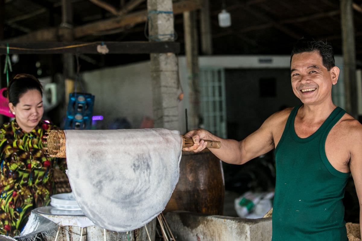 Observe a local family producing rice noodles by hand, a craft passed down through generations. - Orchard Walk & Fruit Tasting